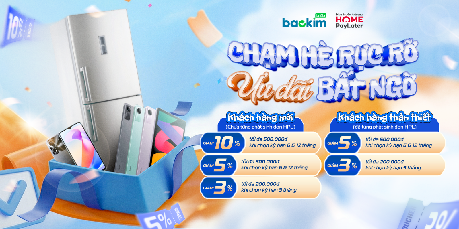 Bước sang Quý II/2026, Baokim Plus phối hợp cùng Home PayLater tiếp tục triển khai chương trình ưu đãi hấp dẫn dành cho Khách hàng mới và Khách hàng thân thiết – góp phần thúc đẩy trải nghiệm mua sắm linh hoạt và gia tăng tỷ lệ chuyển đổi tại điểm bán.